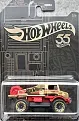 Hot Wheels logo, "55th", red and black stripes on sides.