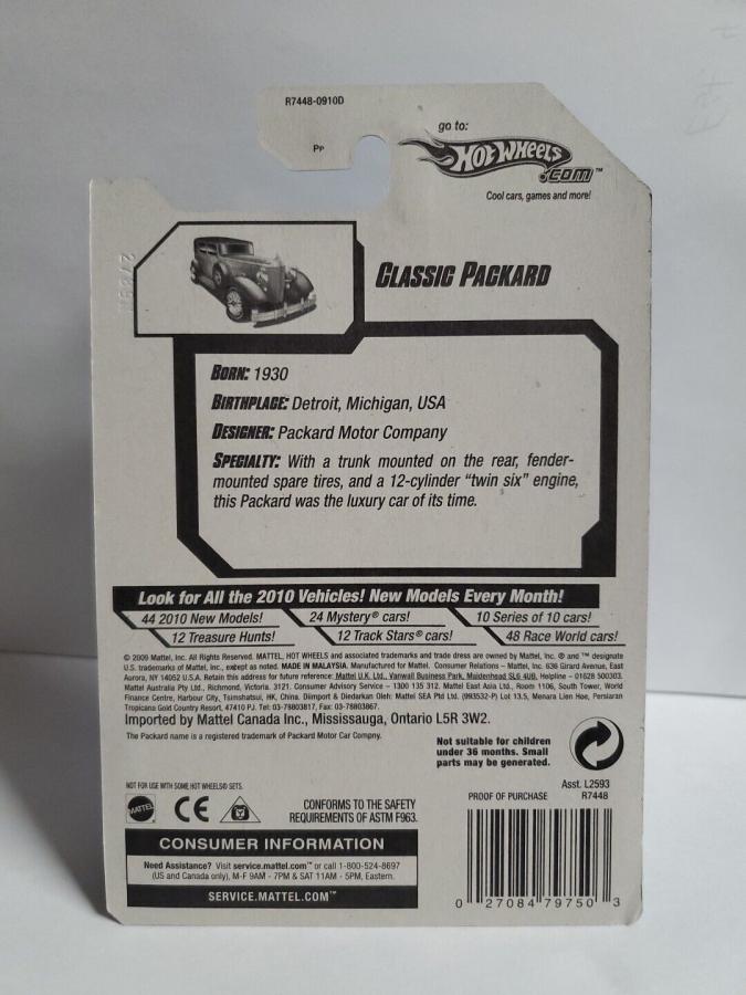 PART NUMBER: R7448 HOT WHEELS #: 47 TYPE: Mainline NAME: Classic Packard COLOR: Spectraflame Blue SERIES NAME: Trea$ure Hunt$ SERIES #: 3 DATE CODE: CASE: |