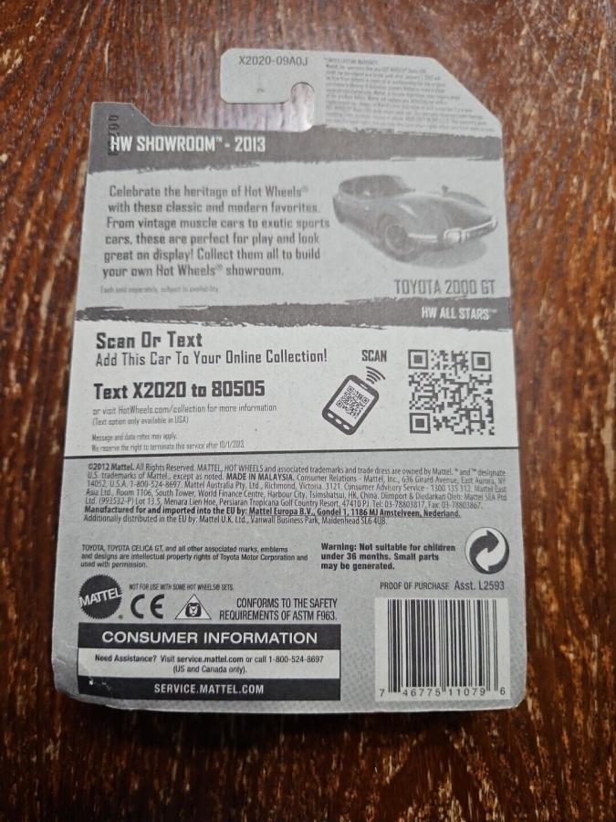 PART NUMBER: X2020 HOT WHEELS #: 176 TYPE: Mainline NAME: Toyota 2000 GT COLOR: Spectraflame Red SERIES NAME: HW Showroom SERIES #: 6 DATE CODE: CASE: Jāā |