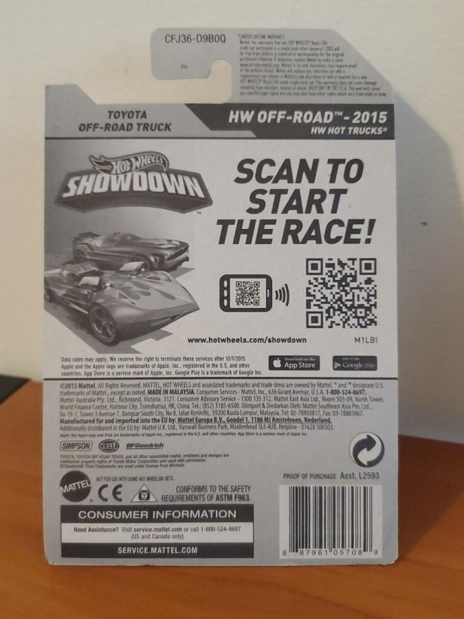 PART NUMBER: CFJ36 HOT WHEELS #: 120 TYPE: Mainline NAME: Toyota Off-Raod Truck COLOR: Spectraflame Red SERIES NAME: HW Off-Road - Hot Trucks SERIES #: 5 DATE CODE: CASE: Q |