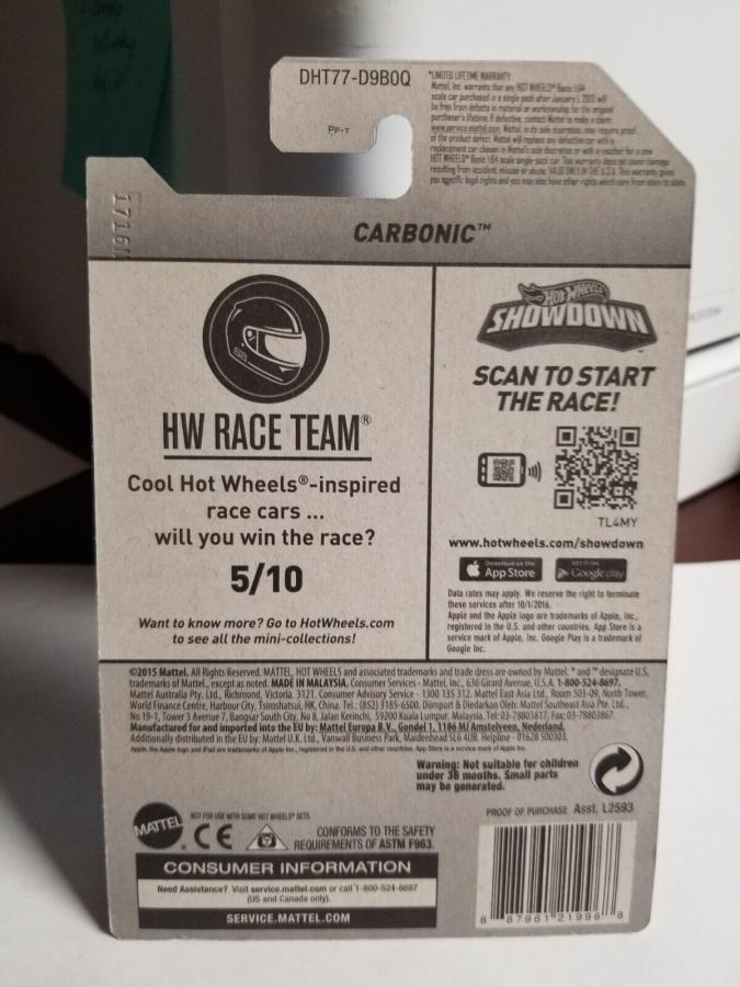 PART NUMBER: DHT77 HOT WHEELS #: 5 TYPE: Mainline NAME: Carbonic COLOR: Spectraflame Blue SERIES NAME: HW Race Team SERIES #: 5 DATE CODE: CASE: Q |