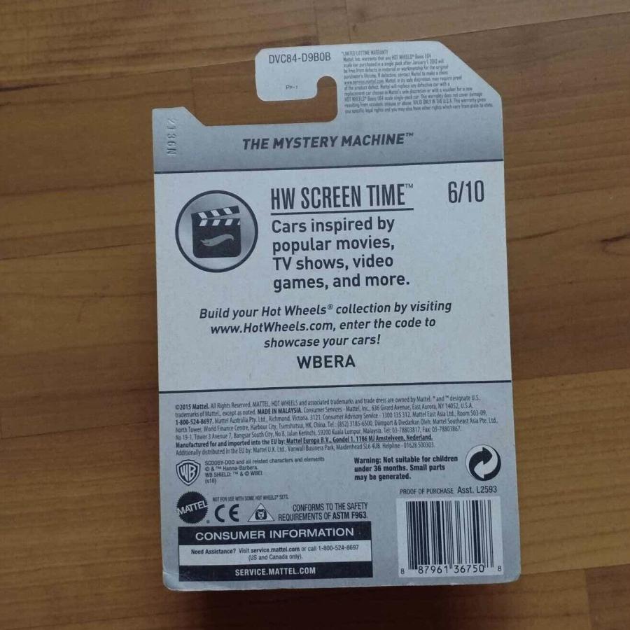 The car is dark green in color and decorated with light green graphics on the sides with two orange flowers. “The Mystery Machine” and the Hot Wheels logo is also displayed on the sides of the car. It features clear windows and an orange interior. It comes with Co-Molded 5-spoke wheels have light green rims and orange spokes.