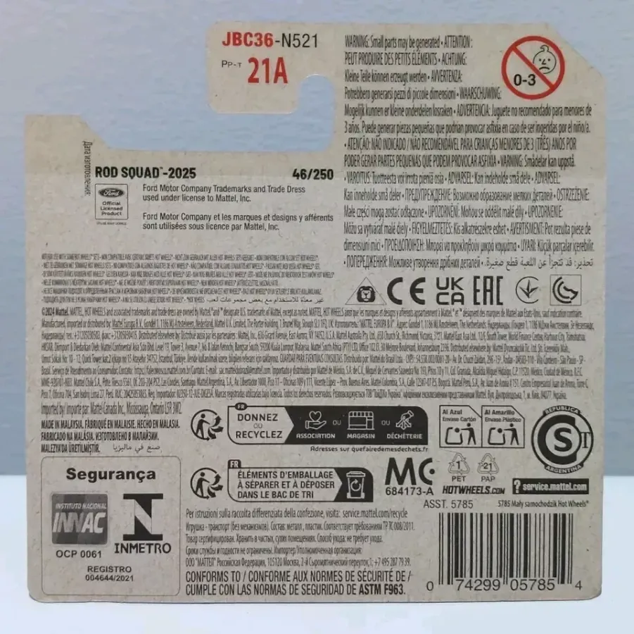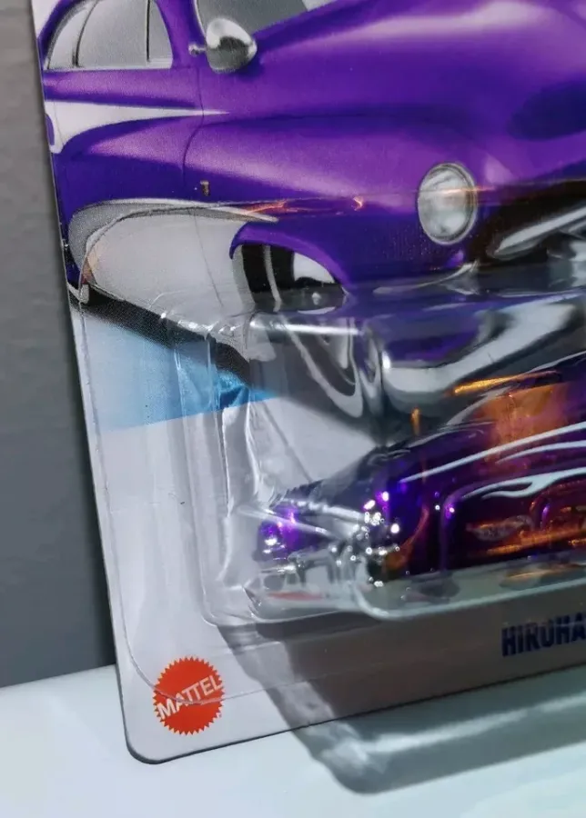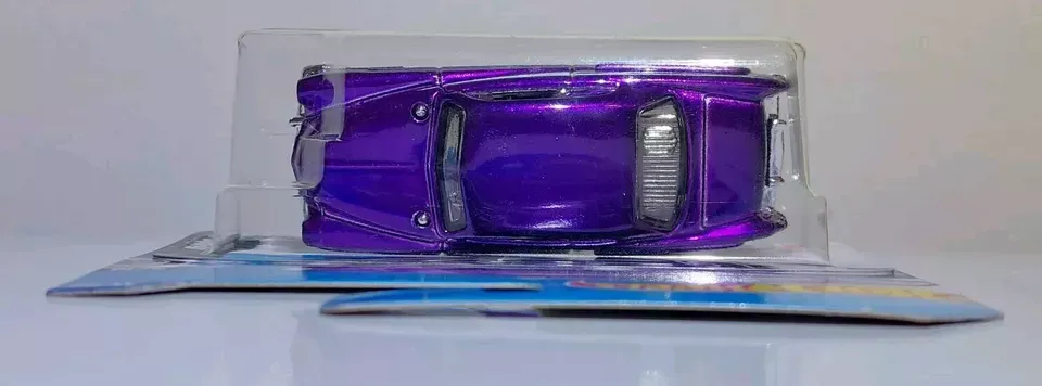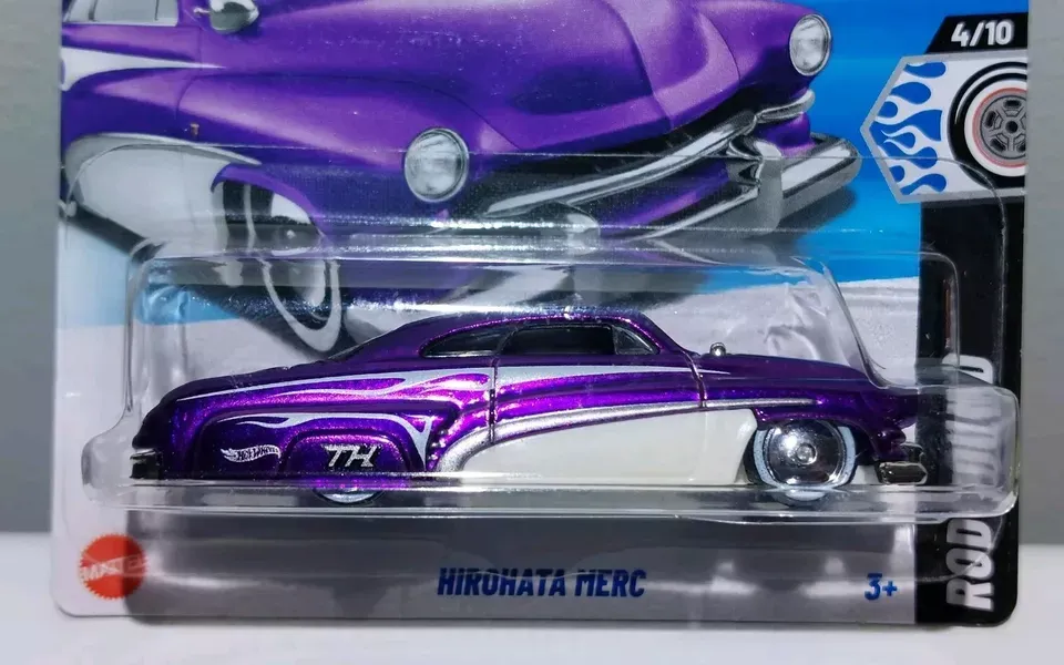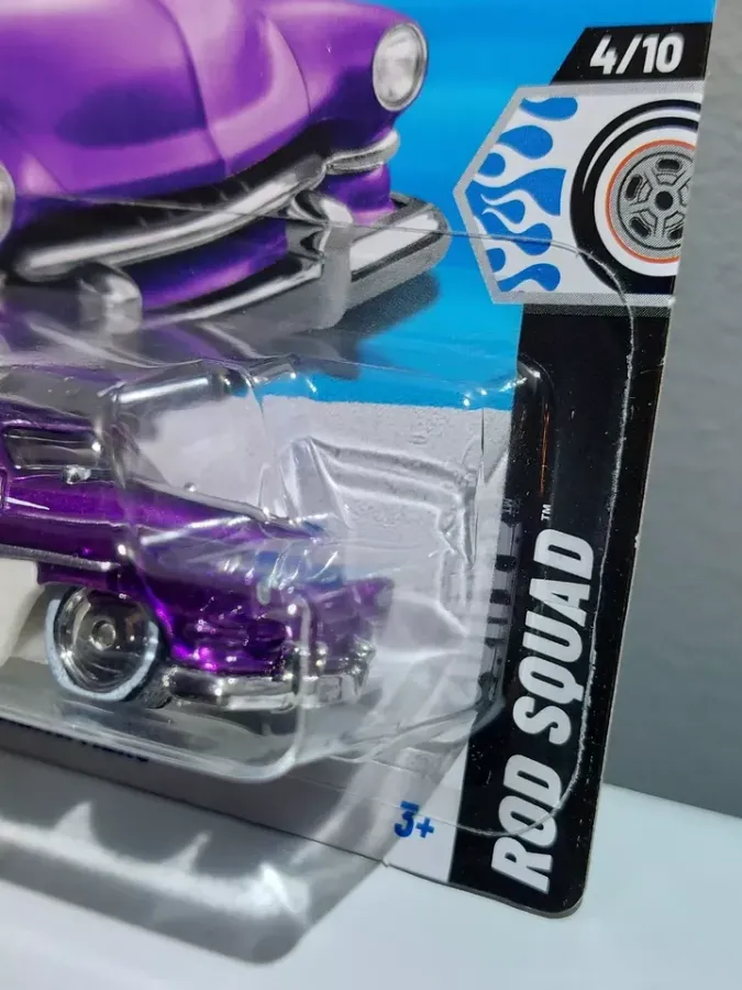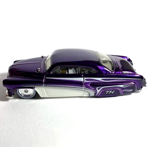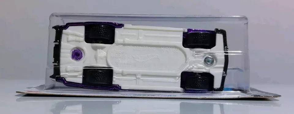 Series & Number: It is also 4/10 in the Rod Squad series. Case Details: This vehicle can be found in mix “B” of 2025 Hot Wheels mainline cases. Identification: The car is spectraflame purple in color with white flames along with white and silver accents. Features include tinted windows, with a chrome interior, a white plastic Malaysia base and Real Rider wheels. Identifying the Treasure Hunt: "TH" can be found on the rear fender skirts.