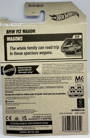 PART NUMBER: JBC48 HOT WHEELS #: 245 TYPE: Mainline NAME: BMW M3 Wagon COLOR: Spectraflame Green SERIES NAME: HW Wagons SERIES #: 5 DATE CODE |