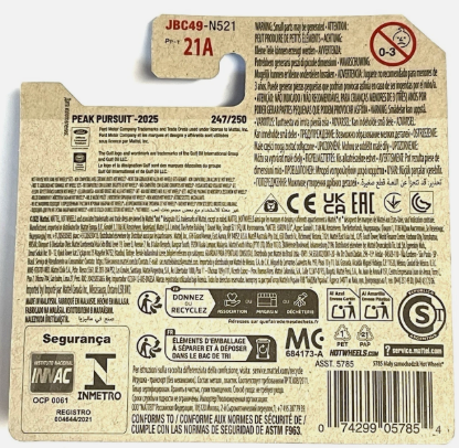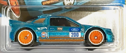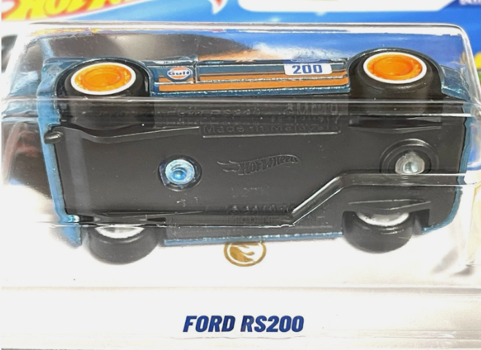 Series & Number: It is also 9/10 in the HW Peak Pursuit series. Case Details: This vehicle can be found in mix “Q” of 2025 Hot Wheels mainline cases. Identification: The car is a Spectraflame gulf blue with a Gulf livery and the number “200” along with orange racing stripes on the body. The features include tinted windows, a gray interior and a black plastic Malaysia base and Real Rider wheels with sport orange Aero rims. Identifying the Treasure Hunt: "TH" can be found on the door panels of the vehicle.