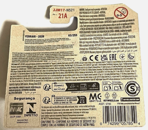 Series & Number: It is also 3/5 in the HW Ferrari series. Case Details: This vehicle can be found in mix “C” of 2026 Hot Wheels mainline cases. Identification: The vehicle is a Spectraflame Black color, adorned with Ferrari emblems and molded stripes.The features include tinted windows with a black interior and a black plastic Malaysia base, sporting Real Rider wheels with Exotic rims. Identifying the Treasure Hunt: "TH" can be found on the door panels of the vehicle.