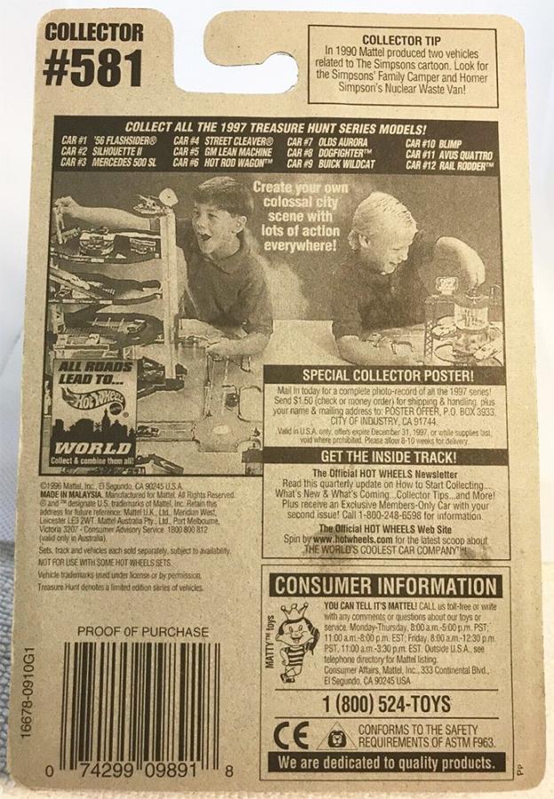 PART NUMBER: 16678 HOT WHEELS #: 581 TYPE: Mainline NAME: Street Cleaver COLOR: Black SERIES NAME: Trea$ure Hunt Series SERIES #: 4 |
