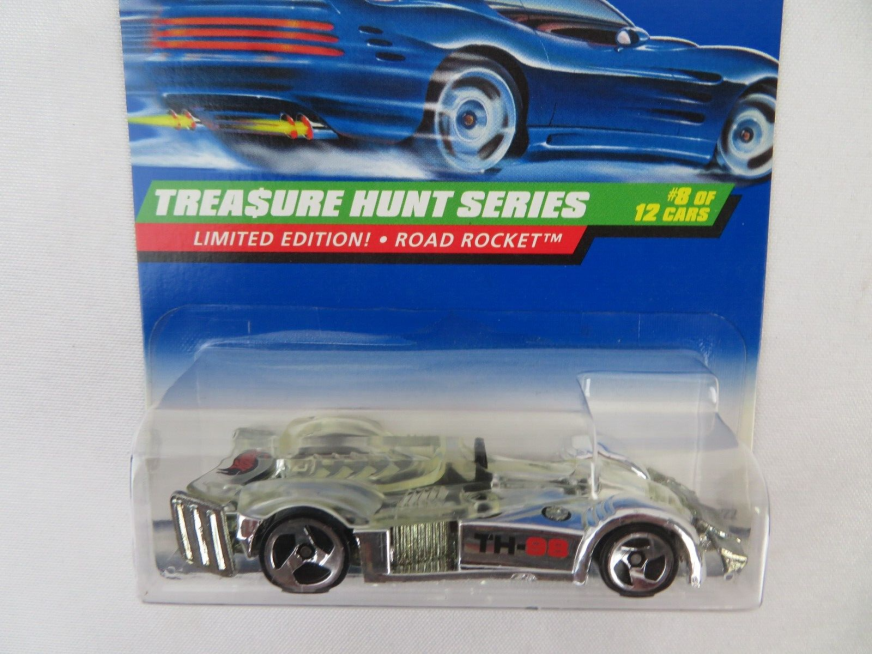 PART NUMBER: 18822 HOT WHEELS #: 756 TYPE: Mainline NAME: Road Rocket COLOR: Chrome SERIES NAME: Treasure Hunt Series SERIES #: 8 |