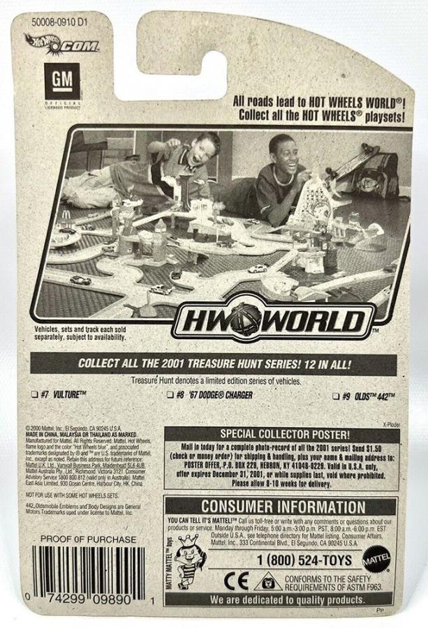 PART NUMBER: 50008 HOT WHEELS #: 9 TYPE: Mainline NAME: Olds 442 COLOR: Metalflake Blue SERIES NAME: Treasure Hunt Series SERIES #: 9 |