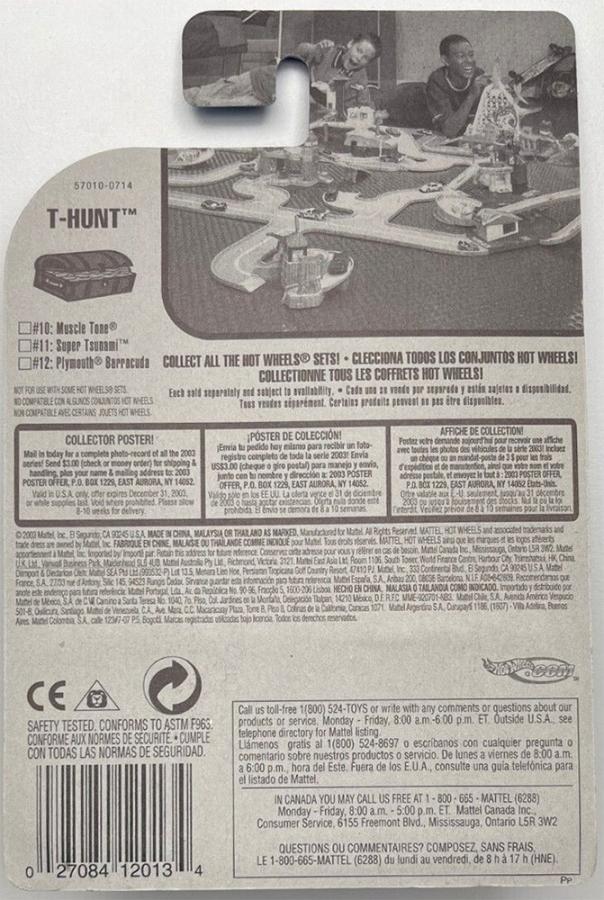 PART NUMBER: 57010 HOT WHEELS #: 11 TYPE: Mainline NAME: Super Tsunami COLOR: Metalflake Light Green / Yellow SERIES NAME: T-Hunt SERIES #: 11 |