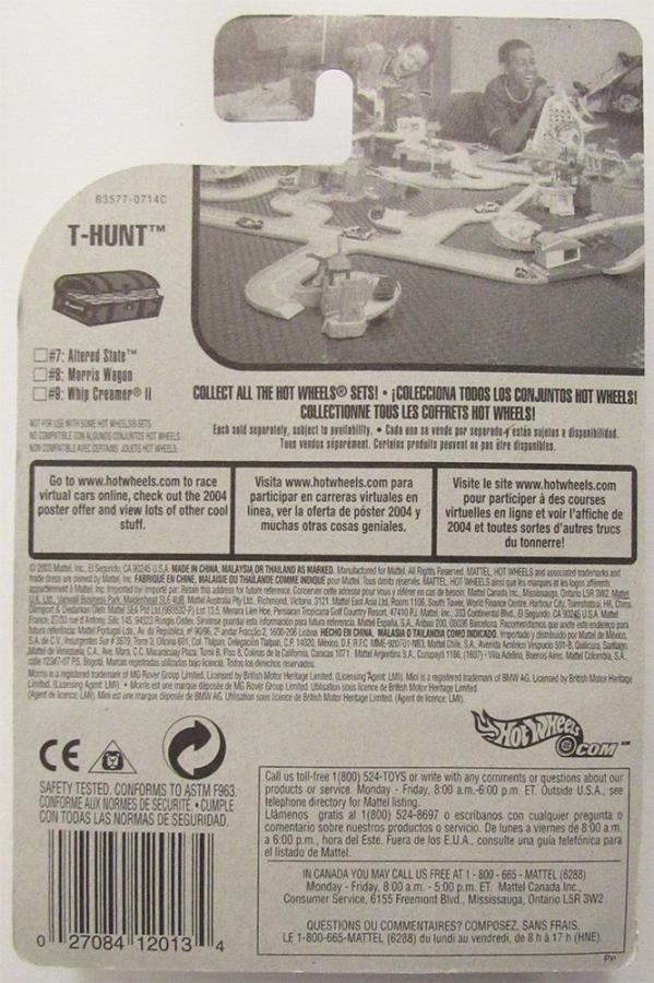 PART NUMBER: B3577 HOT WHEELS #: 108 TYPE: Mainline NAME: Morris Wagon COLOR: Metallic Gold / Black SERIES NAME: T-Hunt SERIES #: 8 |