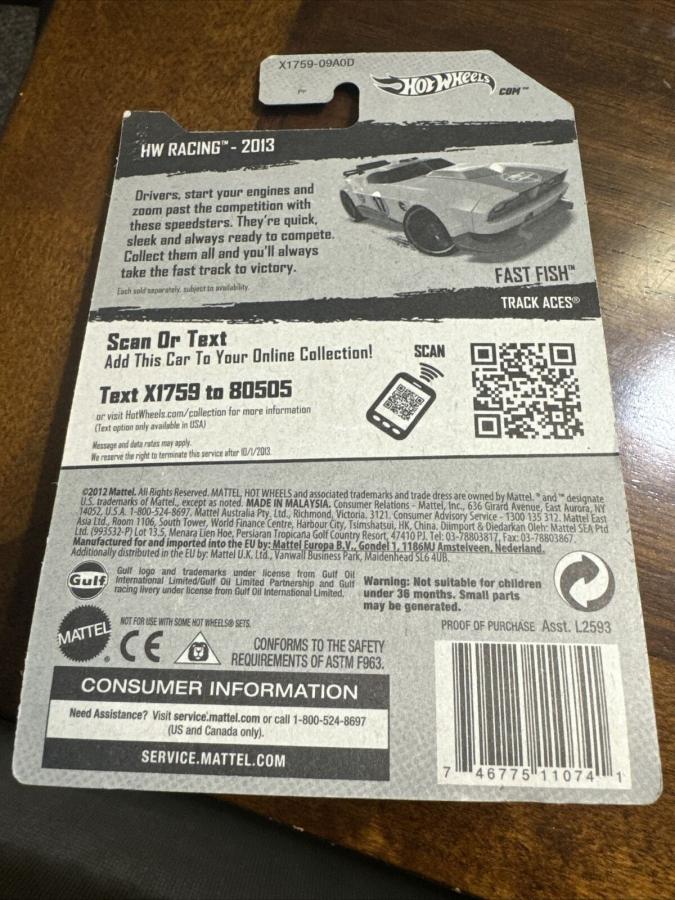 PART NUMBER: X1759 HOT WHEELS #: 128 TYPE: Mainline NAME: Fast Fish COLOR: Pale Blue SERIES NAME: HW Racing SERIES #: 8 DATE CODE: CASE: D |