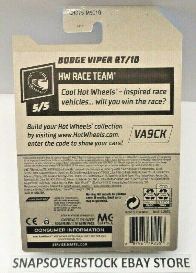 PART NUMBER: GHD75 HOT WHEELS #: 245 TYPE: Mainline NAME: Dodge Viper RT/10 COLOR: Blue SERIES NAME: HW Race Team SERIES #: 5 DATE CODE: CASE: Q |