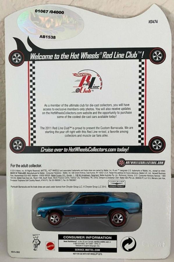 V0474 - Custom Plymouth Barracuda (Blue) Information