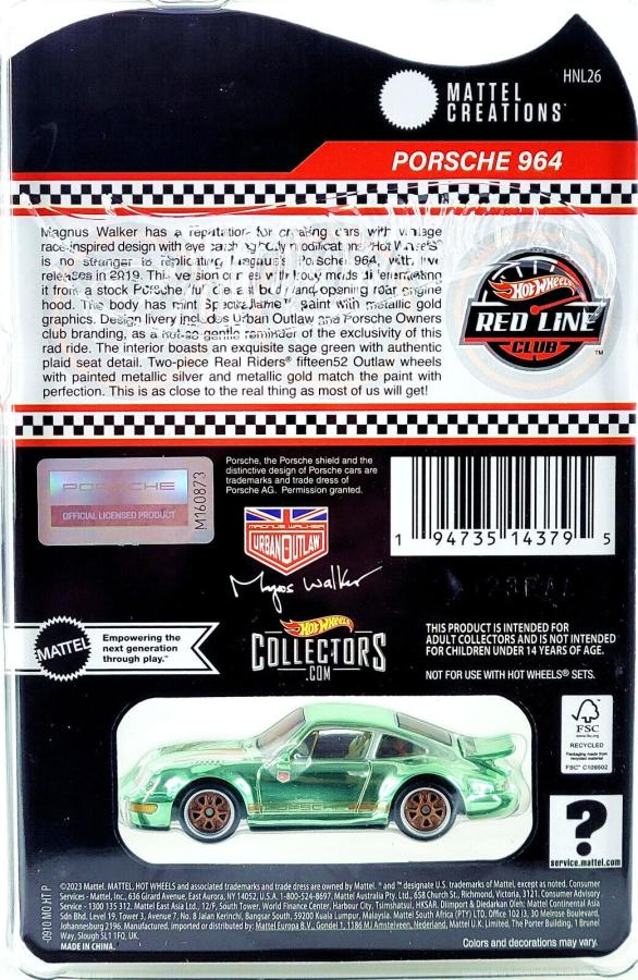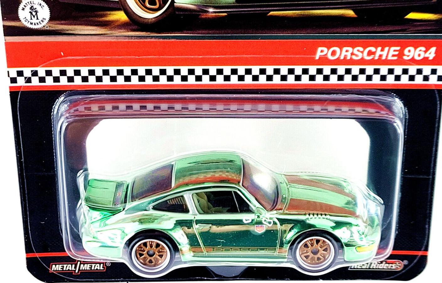 Famed fashion and automobile designer Magnus Walker has a special affinity for Porsche. His 964 designs have been nothing short of epic, and our recreation is no exception. With body mods differentiating it from a stock Porsche, a Spectraflame mint green paint job, and metallic gold graphics, it’s bound to turn heads. We even recreated a sage green interior with authentic plaid seat detail and specially designed Real Riders fifteen52 Outlaw wheels with gold hubs to bring Magnus’s authentic designs to 1:64 scale.