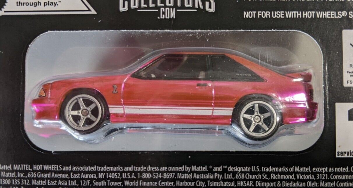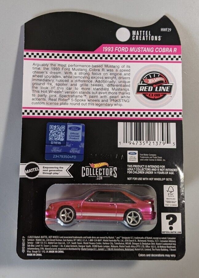 The Hot Wheels Collectors Nationals Convention may be over, but Red Line Club members can get our official convention car: the 2024 RLC Exclusive Pink Edition 1993 Ford Mustang Cobra R. In our RLC tradition, this convention car is hot pink and features realistic decor and a special PNKSTNG license plate.
