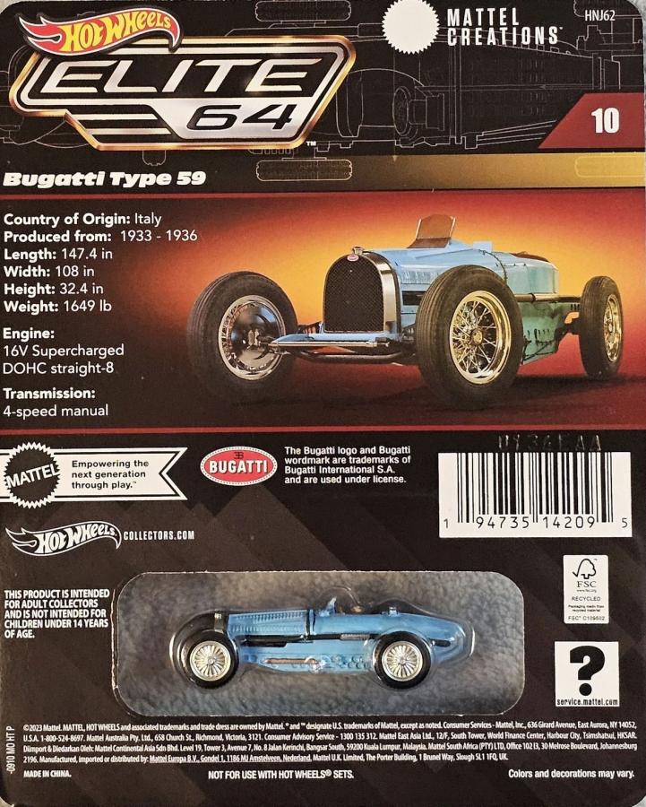Our Elite 64 series castings represent real-world, in-demand vehicles with accurate proportions and 20+ piece construction. The latest entry is the famed Bugatti Type 59 – our first historical vehicle in the series. This 1:64 scale model replicates the Grand Prix car from the 1930s with hyper-realistic details, including its signature teardrop shape and straight eight-cylinder engine.
